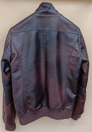 Giacca da uomo in pelle marrone effetto vintage con imbottitura leggera (per mezze stagioni)