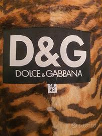 Stupenda giacca D&G Dolce&Gabbana ecopelle nero effetto nappa (quindi morbidissimo) con collo e risvolti maniche tigrato.