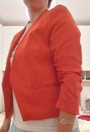 Elegante giacca arancione H&M. - Maniche a 3/4 arricciate. - Scollo aperto. - Tasche frontali. - Fodera interna a fantasia. - Senza bottone
