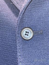 Giacca elegante blu navy con rever classico, per ragazzi di 14 anni circa, ideale per contesti dove il capo non passa in secondo piano, da abbinare con una camicia e un pantalone classico, per i contesti più sportivi, anche con una t-shirt bianca e dei semplicissimi jeans. La giacca è ideale per stagioni temperate, e nelle giornate più fresche, basta metterci sopra un semplice giubbottino smanicato, o un piumino leggero, giusta in primavera, fresca d’estate, e confortevole in autunno. Doppio bottone nella parte davanti, e tre in entrambi i polsini. Capo realizzato interamente in Italia, e da una piccola azienda.