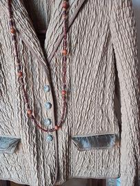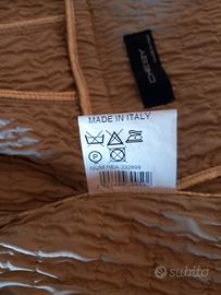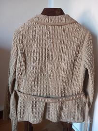 Splendida giacca primaverile firmata CHEBY, un vero gioiello di artigianato Made in Italy. Vendo a malincuore solo perché non mi va più bene come taglia, ma il capo è quasi nuovo, indossato pochissimo e tenuto con estrema cura . Un'ottima occasione per chi cerca un capo unico e di alta qualità. Dettagli che la rendono speciale: Stile Versatile: Grazie al bottone extra in alto, puoi portarla con i revers aperti o chiusa alta a girocollo (stile bon-ton). Finiture di Lusso: L'interno è interamente rifinito con profili in oro laminato. Le tasche frontali sono bordate in tulle semitrasparente. Tessuto Tecnico: Particolare lavorazione plissé/increspata che non si stropiccia mai, ideale per rimanere perfette tutto il giorno durante un evento. Dettagli Sartoriali: Bottoni coordinati sul fronte e sui polsini; cintura inclusa per valorizzare il punto vita. Vestibilità e Misure (Taglia L): La vestibilità è comoda e regolare. Ecco le misure precise prese in piano: Lunghezza: 60 cm Ascella-Ascella: 50 cm Spalle: 40/41 cm Ideale per: Matrimoni, Cresime, Comunioni o per dare un tocco chic a un look da ufficio. prezzo trattabile. Per qualsiasi informazione contattatemi. #giaccadonna #giaccacerimonia #madeinitaly #cheby #giaccaprimaverile #tagliaL #beige #oro #tulle #matrimonio #cresima #comunione #chic #sartoriale #plissé #occasione #outfitcerimonia #giaccabeige #golddetails