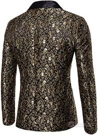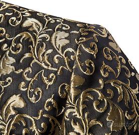 Vendesi giacca elegante da cerimonia come nuova, in quanto indossata una sola volta. Colore: nero con decorazioni floreali color oro in rilievo. E' presente un taschino interno. Taglia XXL con vestibilità regolare. Materiale: 100% sintetico. Misure: circonferenza petto: 127 cm; circonferenza vita: 120 cm; lunghezza manica: 71 cm; larghezza spalle: 53,5 cm. Non si accettano restituzioni dovute a errori nella scelta della taglia, quindi si consiglia di valutare bene prima di procedere con l'acquisto. Non fanno parte della vendita la camicia, il gilet, la cravatta, il papillon, i pantaloni o altri accessori. Spedisco in tutta Italia a 9,00 euro mediante Poste Italiane (pacco tracciabile), previo pagamento tramite Paypal o altri metodi di pagamento. Rilascio il mio numero di telefono previa richiesta via e-mail; se non potete permettervi il costo di una chiamata lasciate perdere. Offro e pretendo la massima serietà. Esigo rispetto e buona educazione nei contatti con il sottoscritto; in caso contrario, verrete ricambiati con la vostra stessa moneta. Astenersi vari perditempo, arroganti, provocatori, paranoici diffidenti, pseudosapientoni, tirchi, scrocconi e accattoni: non ho né tempo da perdere né bisogno di soldi.