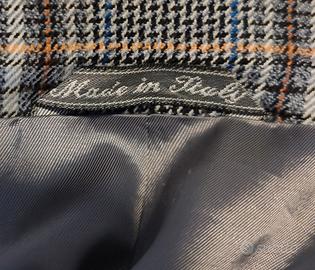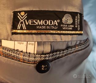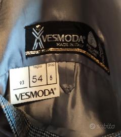 Giacca elegante da uomo con due bottoni Vesmoda, di colore grigio e blu chiaro, particolare con dettagli a striscie, taglia 54, fatto in Italia.