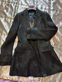 Giacca elegante, acquistata nei negozi da cerimonia Abito nero lungo con strascico e motivo bianco davanti sul petto con strass