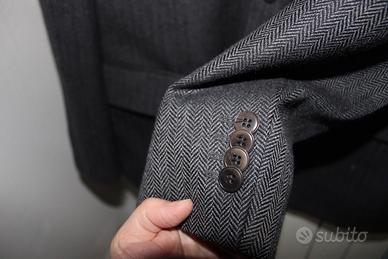 * Modello: Monopetto a 3 bottoni. Presenta un taschino sul petto e due tasche con patta. Polsini con 4 bottoni decorativi. Spacco singolo posteriore (come da foto retro).