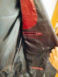 Elegante giacca nera per eventi importanti e serate, tasche interne ancora cucite fon rifiniture color borgogna, lavorazione Napoletana,