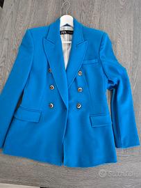 Giacca doppio petto bluette,bottoni dorati. Taglia M .