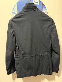 Giacca/giubbino estivo emporio armani. Colore blu taglia L slim. Tasche esterne ancora cucite e 2 tasche interne scucite. Zip e dettagli acciaio lucido. Zip sul collo per estrarre cappuccio impermeabile. All’interno c’e un laccetto per appendere l’ombrello. Usato poco come nuovo