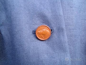 Giacca da concorso Star Bright, 100% lino, nuova con etichetta, blu con fodera nera, colletto velluto blu, bottoni in cuoio con cavallino, taglia M