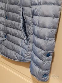 Giacca fashion da uomo in piumino d'oca color carta da zucchero il modello trendy 4 tasche esterne con la chiusura a bottoncini automatici taglia 48. giuo048. Lunghezza 75 cm. larghezza spalla 43 cm. larghezza torace 55 cm. Il capo è USATO in eccellenti condizioni privo di qualsiasi difetto e della targhetta composizione del tessuto e della taglia originale ed autentico. Allegri - Made in Italy
