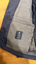 Vendo set Fay originale composto da giacca blazer trapuntata (taglia XXXL) e gilet interno coordinato (taglia XXL), colore blu navy. (Vestibilita come XL) Usati pochissime volte, in condizioni perfette — nessun segno di usura, strappo o macchia. Praticamente come nuovi. La giacca ha taglio blazer con colletto a revers, chiusura a bottoni, impunture trapuntate a quadri, tasche laterali con patta e logo “F” applicato sulla manica sinistra. Fodera interna in jersey grigio mélange con etichetta Fay “Made with special materials”. Il gilet ha colletto alto con zip, tasche laterali con zip e fodera in nylon tono su tono. I due capi si indossano insieme (il gilet sotto la giacca per un look stratificato) o separatamente, molto versatili per la mezza stagione. Prezzo: €200 trattabili Spedizione a carico dell’acquirente oppure ritiro a mano in zona Follonica (GR).