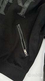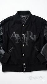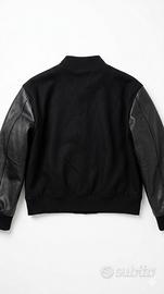 Bellissima giacca stile Varsity nera, caratterizzata da un contrasto di materiali che le conferisce un look moderno e grintoso.
