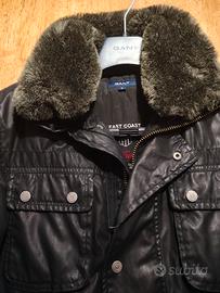 Giacca GANT dal taglio field jacket, ispirata allo stile Barbour, realizzata con finitura effetto cerato e design robusto ma raffinato. Modello della linea East Coast, caratterizzato da tasche frontali utility, chiusura con zip e bottoni e colletto in eco-pelliccia removibile (o comunque molto scenografico 😄).