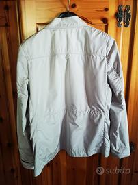 Giacca Geox, impermeabile e leggera, taglia 46 con cerniera per la comodità e bottoni per un tocco di eleganza in più. Color grigio, bianco ghiaccio.