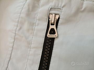 Vendo giacca Geox, colore bianco azzurro. Traspirante, cappuccio ripiegato nel colletto. Taglia 48 ( ma veste piccolo ), più adatto ad una taglia 44/46. Vedi misure: spalla 41 cm, manica 66 cm, tronco 52 cm, lunghezza dalla spalla