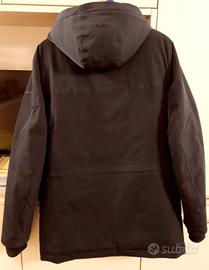 Colore blu navy, ampie tasche esterne e interne, cappuccio con pelliccia, ideale autunno/inverno (per montagna, città o in località di sci)