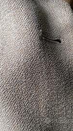 Tessuto con colorazione a melange, tre fili di tonalità diverse che creano un effetto "sale e pepe" chiaro e scuro che danno lucidità al tessuto che dal grigio vira verso il beige...