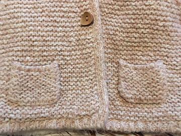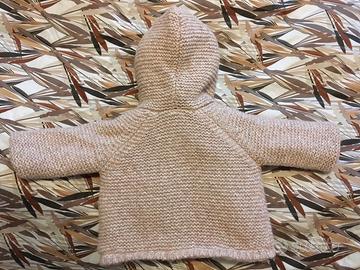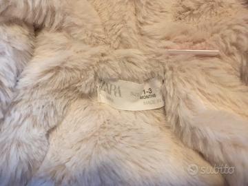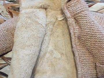 Giacca imbottita / Giubbetto imbottito invernale per neonati (bambina 1-3 mesi) in maglia di lana esterna e imbottitura (in pelliccetta) calda e soffice interna. Con cappuccio e tasche. Ottime condizioni. Completo di bottoni ed etichetta marca Zara.