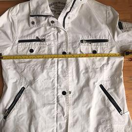 Giubbino bianco Elsy Since 1958 tg. 38. Le misure sono in foto: lungo cm 52, da ascella ad ascella cm 45. Chiusura con zip + bottoni automatici. Dotato di 4 tasche davanti e una tasca sulla manica. Usato pochissimo è come nuovo.
