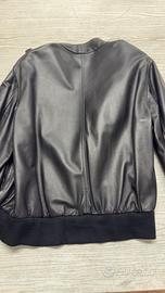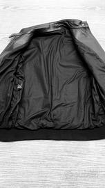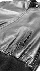 Giubbino bomber in vera pelle 100% nappa super morbida con trattamento idrorepellente, color nero, polsini morbidi (non stringono e possono essere risvoltati) e giro fianchi in maglia. Vintage. Lavorazione artigianale. Made in Italy. Nuovo con cartellino, fodera perfetta, mai indossato.Tg 42, in foto indossato morbido da tg 40 italiana. Nessun difetto. Prezzo negozio 640€