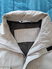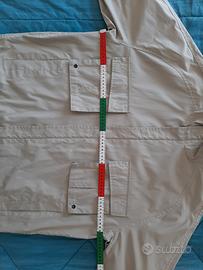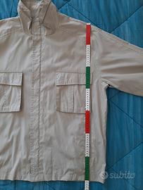 Giacca da uomo marca Blue Side caratterizzata da chiusura centrale nascosta con zip, polsini regolabili, due tasche frontali a soffietto, due tasche aperte e una tasca interna. La vestibilità è regolare, il tessuto leggero dotato di fodera interna traforata la rende ideale per la mezza stagione. 🔎 Usata pochissimo, complessivamente in più che buone condizioni generali, sono solo presenti alcuni leggerissimi segni sicuramente rimovibili con un lavaggio e dei leggeri segni di usura nella fascia bassa interna (vedi foto di dettaglio). Non trovo più il suo cappuccio. Misure in foto, calcolare un minimo di tolleranza. 📌 Dettagli: • Taglia: L • Colore: Beige, sabbia con dettagli in nero • Composizione: esterno 85% poliestere e 15% poliammide, fodera 100% poliammide