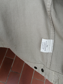 Bellissimo giubbino in cotone al 100% color sabbia. Elegante, sportivo adattabile a qualsiasi abbigliamento. Pratico nelle mezze stagioni o nelle serate d'estate. Lavabile in lavatrice e taglia XL. Possibilità di stringerlo anche in vita spostando il bottone come si vede in fondo nella seconda foto. Usato pochissimo x cambio taglia.