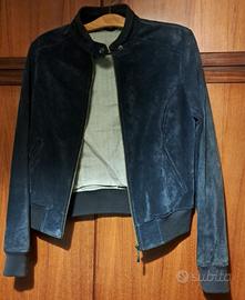 Vendo giacca giubbotto bomber blouson in pelle scamosciata di colore blu da donna taglia 42.