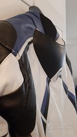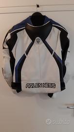 Giacca giubbotto pelle moto Arlen Ness tg 50 americana, 44/46 italiana,con protezioni spalle gomiti e gobba per la zona cervicale,ancora in ottime condizioni, usata un paio di volte,colore bianco celeste nero,bellissimo.