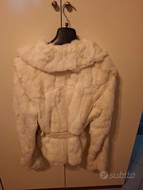 splendida pellicchia a giacchino in morbidissimo lapin bianco ottico,ottime condizioni. Cintura in pelle scamosciata.