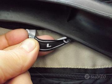 GIUBBOTTO GIACCA MOTO CON PROTEZIONI , QUALCHE CUCITURA DA RIPRISTINARE ,LEGGERMENTE ABRASO VEDI FOITO INTERNO MANICHE . IMBOTTITURA REMOVIBILE. TAGLIA L.