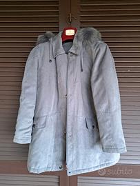 giacca grigia con cappuccio in pelliccia internamente in poliestere taglia XXL