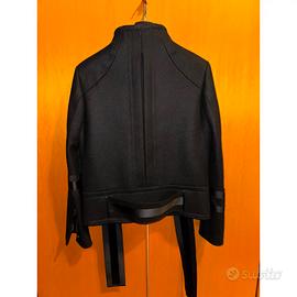 Splendida giacca Gucci originale, caratterizzata da un taglio strutturato e contemporaneo che fonde l'eleganza sartoriale con un tocco d'ispirazione militare. Un pezzo versatile e di altissima qualità, rigorosamente Made in Italy Nello specifico, questo capo appartiene all'era di Tom Ford o ai primissimi anni di Frida Giannini (attorno alla collezione Autunno/Inverno 2004-2005). Il codice che si legge sull'etichetta (136886 ZI214) conferma che si tratta di un pezzo d'archivio molto ricercato dagli appassionati di quel periodo "bold" e glamour di Gucci. Dettagli del Design: • Colore: Nero profondo. • Materiale: 100% Lana di altissima qualità (Lana Wool); fodera interna in 100% Cupro (Rayon) con logo GG monogram all-over. • Costruzione Posteriore: Design architettonico con pannelli sagomati e un dettaglio "strap" orizzontale in satin sulla parte bassa della schiena che dona una silhouette definita. • Maniche: Dettaglio a fasce in satin tono su tono e polsini con zip metalliche e bottoni a pressione logati per un look deciso. • Chiusura: Zip frontale e bottoni a pressione dorati con incisione "GUCCI". • Colletto: Collo alto strutturato. Condizioni e Autenticità: • Stato: Ottime condizioni, indossata pochissimo e conservata con cura. • Composizione: Lana (esterno) / Cupro (fodera). •Taglia S