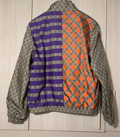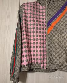 giacca in tessuto tecnico del marchio Gucci, caratterizzata da un motivo GG monogrammato e pannelli a contrasto. Campionario,compresa di copri giacca antipolvere. Taglia M