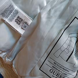 Giacca Guess color argento chiaro, tg. XS. Indossata un paio di volte. Cinturino in vita e taschina interna.