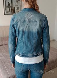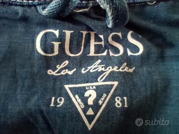 Bellissima giacca in denim firmata Guess, lavaggio medio con effetto sfumato. Il pezzo forte è il maxi logo posteriore ricamato con punti luce e strass, perfetto per non passare inosservata! Condizioni: Ottime, denim resistente e di qualità. Dettagli: Bottoni logati, doppie taschine frontali e cuciture a contrasto che slanciano la figura. Taglia: L'etichetta riporta Junior 16 (170 cm). Vestibilità: Corrisponde a una S donna (o una XS comoda). Essendo un taglio Junior, è leggermente più corta in vita, ideale da portare sopra vestitini o con pantaloni a vita alta. 📏 Misure precise: Larghezza (ascella-ascella): 43 cm Lunghezza manica: 60 cm Lunghezza totale: 45 cm Spedizione rapida! Per qualsiasi info o altre foto, scrivimi pure. 📩