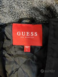 Giacca invernale originale GUESS, colore nero, con interno trapuntato e cappuccio foderato in morbido tessuto grigio.