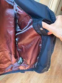Giacca denim blu scuro taglia 46, usata ma ben tenuta.