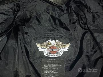 Bellissima giacca in pelle originale Harley Davidson taglia L europea con imbottitura interna removibile. Misure spalle 48cm, torace 55cm braccia 65cm. Possibilita di inserimento protezioni spalle e gomiti. Condizioni pari al nuovo. Se non interessati passare oltre grazie. Spedisco. Prezzo non trattabile grazie