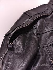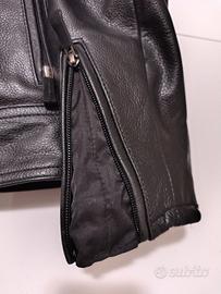 Stupenda giacca Harley Davidson in pelle incredibile, FXRG serie TOP di gamma con rinforzi in pelle su spalle e gomiti ma trattata con effetto carbonio con parti grigie catarifrangenti, protezioni dedicate per spalle schiena e fascia lombare, provvisto di svariate prese d'areazione anteriori e posteriori, tasche interne ed esterne come evidenziato in foto. La giacca è molto pesante e adatta al periodo invernale. Praticamente è nuova senza cartellino perché indossata una volta. Veste taglia 48/50 Il prezzo di vendita era di 1400 euro.