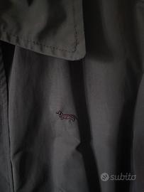 Elegante giacca dal taglio classico, colore blu scuro, con chiusura a bottoni e logo ricamato sul petto (bassotto iconico del brand). Interno con tasca a zip arancione con dettaglio del marchio.