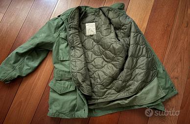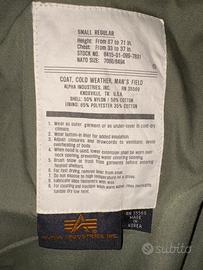 M-65 Heritage Field Jacket di Alpha Industries, cappuccio ripiegabile nel colletto, seconda giacca trapuntata interna per un maggiore isolamento termico, può essere fissata tramite bottoni.