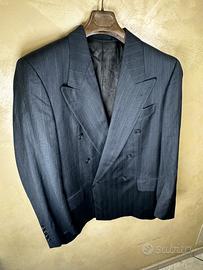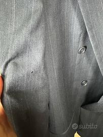 Eleganza senza tempo firmata Hugo Boss. Questa splendida giacca doppio petto rappresenta il meglio della sartoria tedesca classica. Realizzata con un pregiato mix di Lana e Cashmere, offre una mano estremamente morbida, calda e una vestibilità strutturata tipica degli anni '80/'90 (stile Power Suit). Caratteristiche Principali: • Taglia: 50 italiana Lunghezza 80 cm Ascella ascella 56 cm Manica 60 cm Giromanica 26 cm Spalla Spalla 51 cm • Brand: Hugo Boss (Linea Vintage/Archivio). • Modello: Doppio petto a 6 bottoni (configurazione 6×2). • Tessuto: Misto Lana e Cashmere di alta qualità, con raffinata trama gessata (pinstripe). • Dettagli: Ampie rever a lancia (peak lapels), quattro bottoni ai polsi e tasche a filetto con patta. • Colore: Grigio Antracite / Blu scuro profondo. • Produzione: Made in Germany. Condizioni: La giacca è in ottime condizioni generali, con colori vividi e tessuto ben conservato.