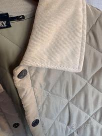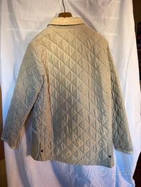 Classica giacca trapuntata color beige con collo in velluto.