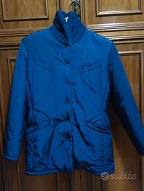 Giacca imbottita donna blu cangiante chiusa con bottoni clip, tasche inserite sopra e sotto
