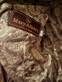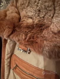 Bellissima giacca imbottita marchio “Mary Albert”foderata ,con impunture in vera pelle e zip funzionanti .Presenta al collo ed ai polsi fibbie con brillantini (vedi foto).Collo e polsini arricchiti da una morbidissima e perfetta pelliccia .Taglia 44.