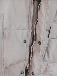 Modello con chiusura a bottoni, e cerniera collo alto e due tasche frontali con strappo una interna anch'essa strappo