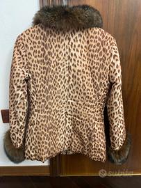 Giacca imbottita maculata con collo e polsini in eco pelliccia