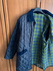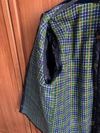 Giacca Uomo, Stemma Unitalsi, colore blu, taglia M, Esterno imbottito, Interno foderato con stoffa a quadretti verde/blu in cotone, 2 tasche esterne bordate con stoffa rigatino-velluto, colletto in rigatino velluto, maniche con cerniera. Usata qualche volta. Ottimo stato.
