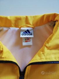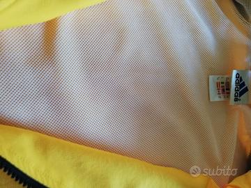 Giacca Adidas antipioggia con cerniera, in perfette condizioni. Taglia 48/50. Bicolore giallo e nero. Tasche laterali, completamente foderata. Affare