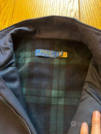 giacca impermeabile blu uomo di Polo Ralph Lauren, taglia M. Interno in pile a quadri scozzese verde e nero. Mai usata. Con tasche con zip e chiusura con cerniera.
